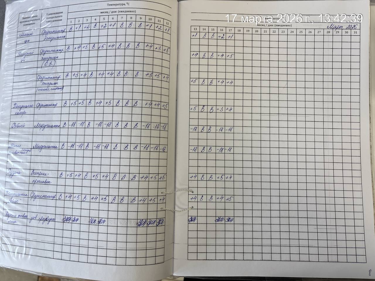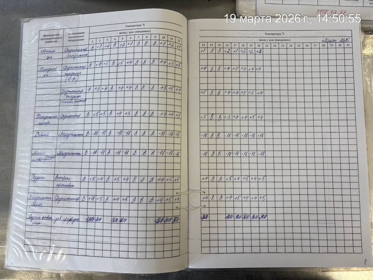 - Журнал учета температурного режима холодильного оборудования