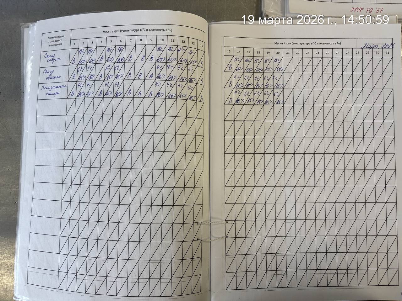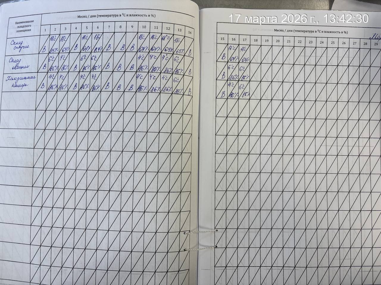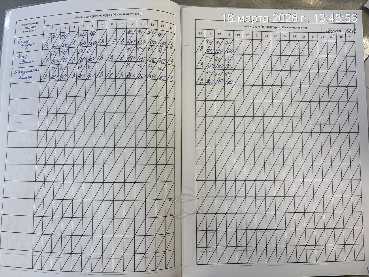 - Журнал учета температуры и влажности в складских помещениях