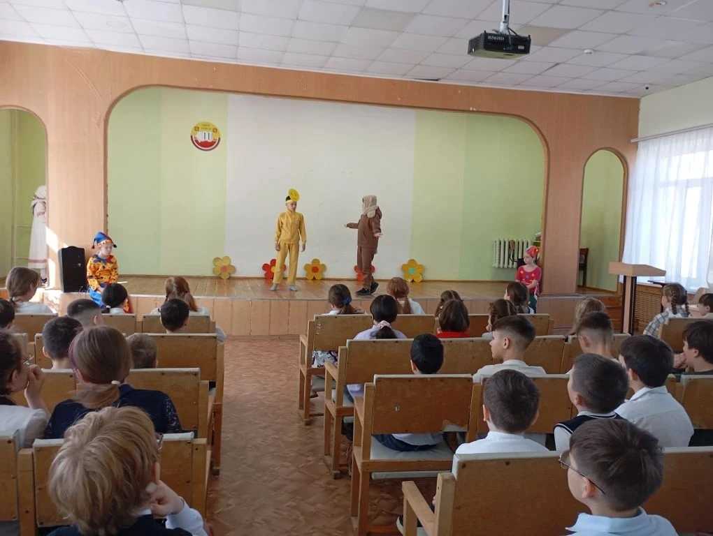 Вчера в актовом зале царила настоящая театральная атмосфера: школьная театральная студия «Непоседы» представила нашим ученикам начальных классов премьеру спектакля «Колобок на новый лад»!