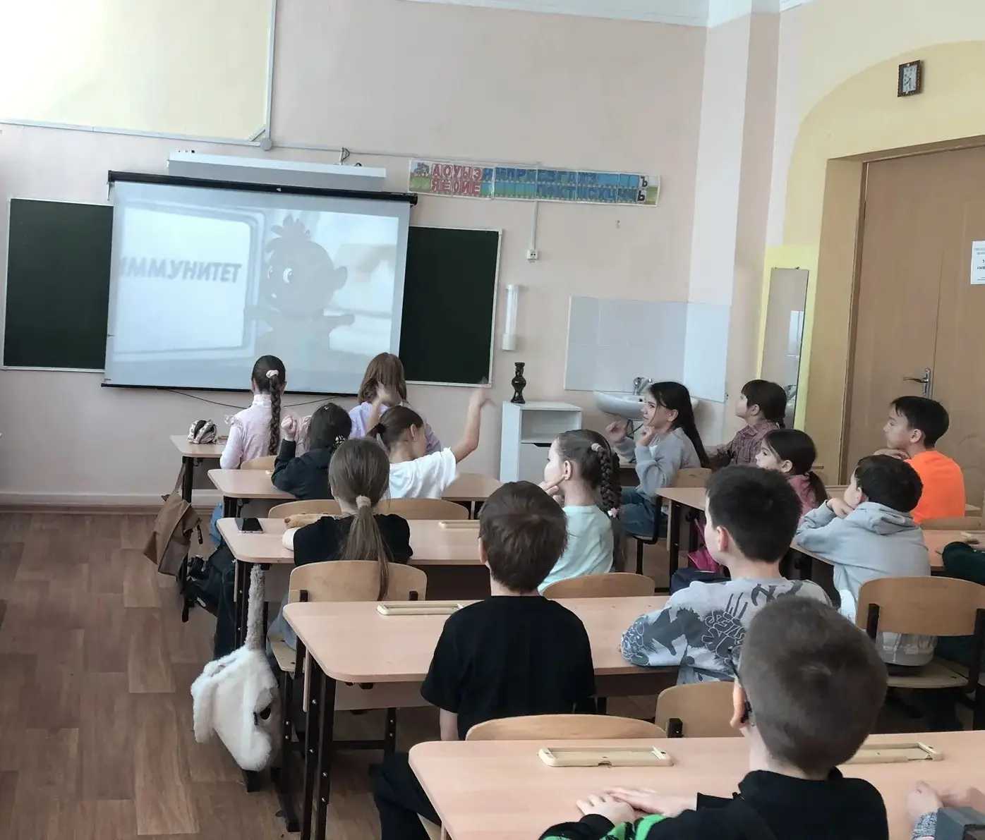 В связи с продолжением масштабного просветительского проекта – Лекторий «Санпросвет», направленного на информирование граждан об основных методах профилактики инфекционных заболеваний и повышение уровня санитарной грамотности населения для обучающимся школы провели познавательный урок здоровья с героем детского «Санпросвета» Петей Лентяевым, где ребята узнали о важности гигиены рук для поддержания и укрепления здоровья.