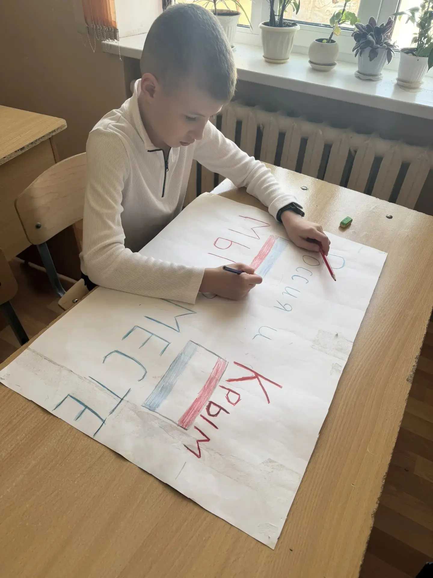 обучающиеся школы создали плакаты и выразили любовь и теплоту к Крыму в виде «Флага единства».