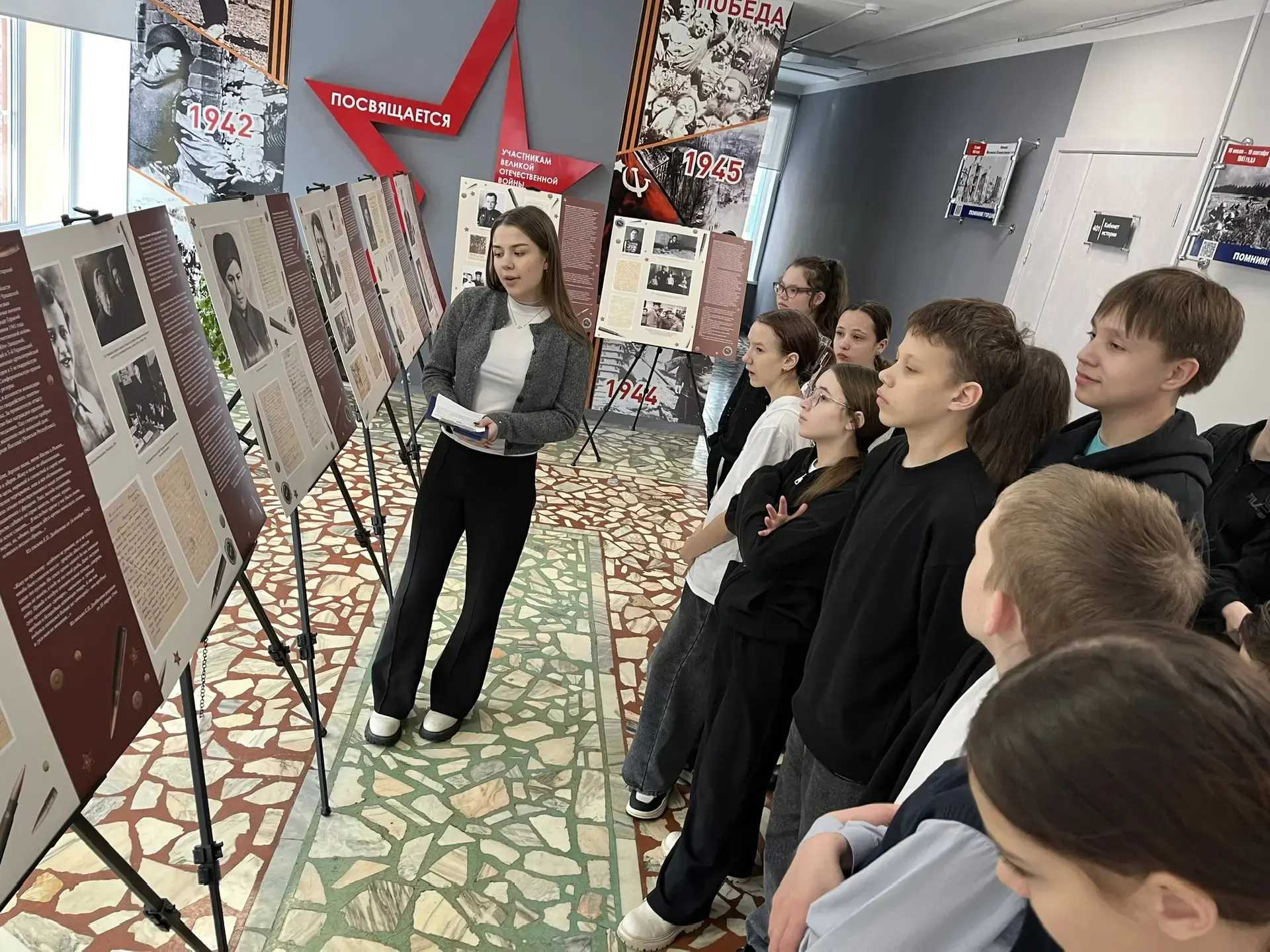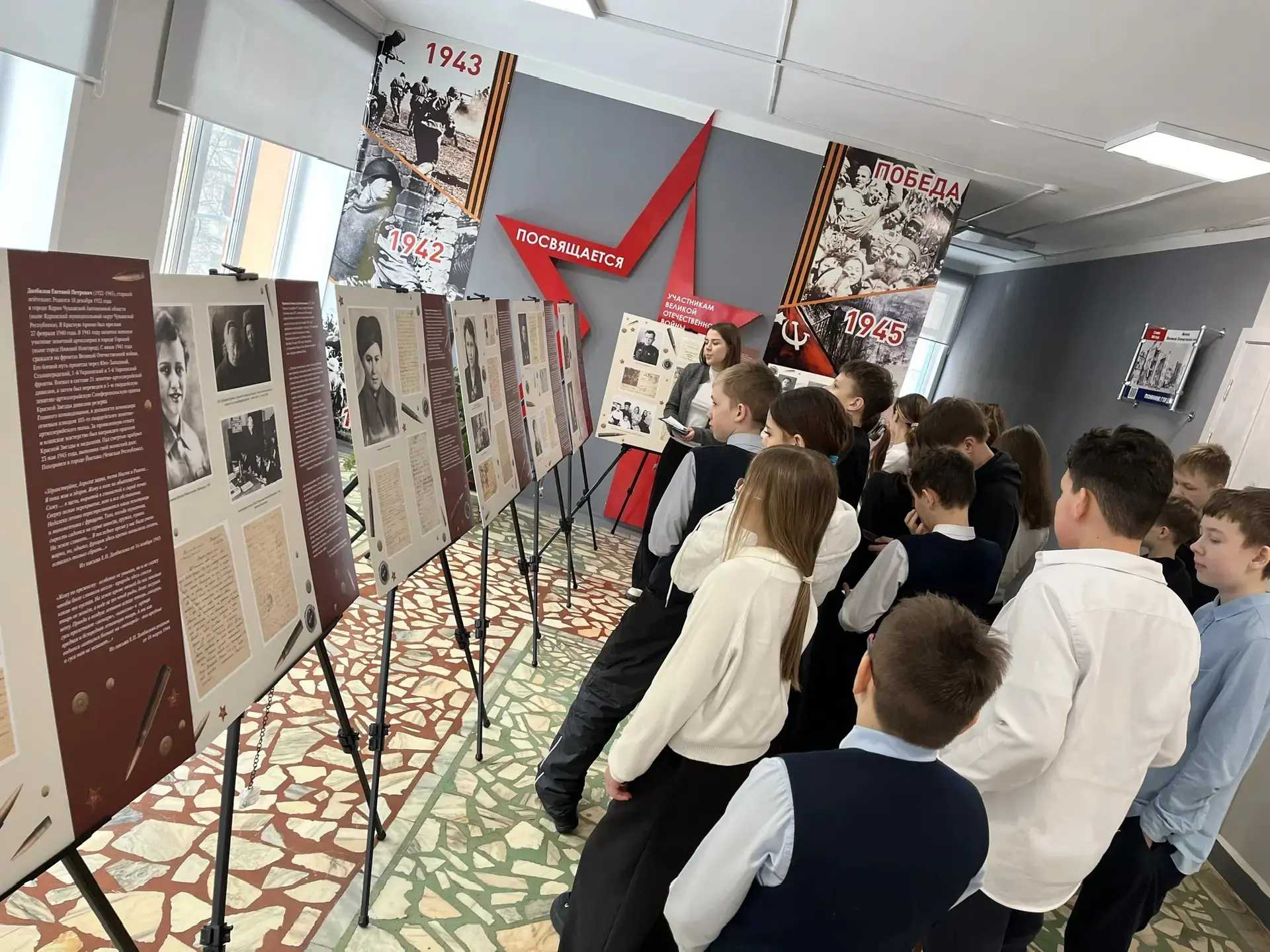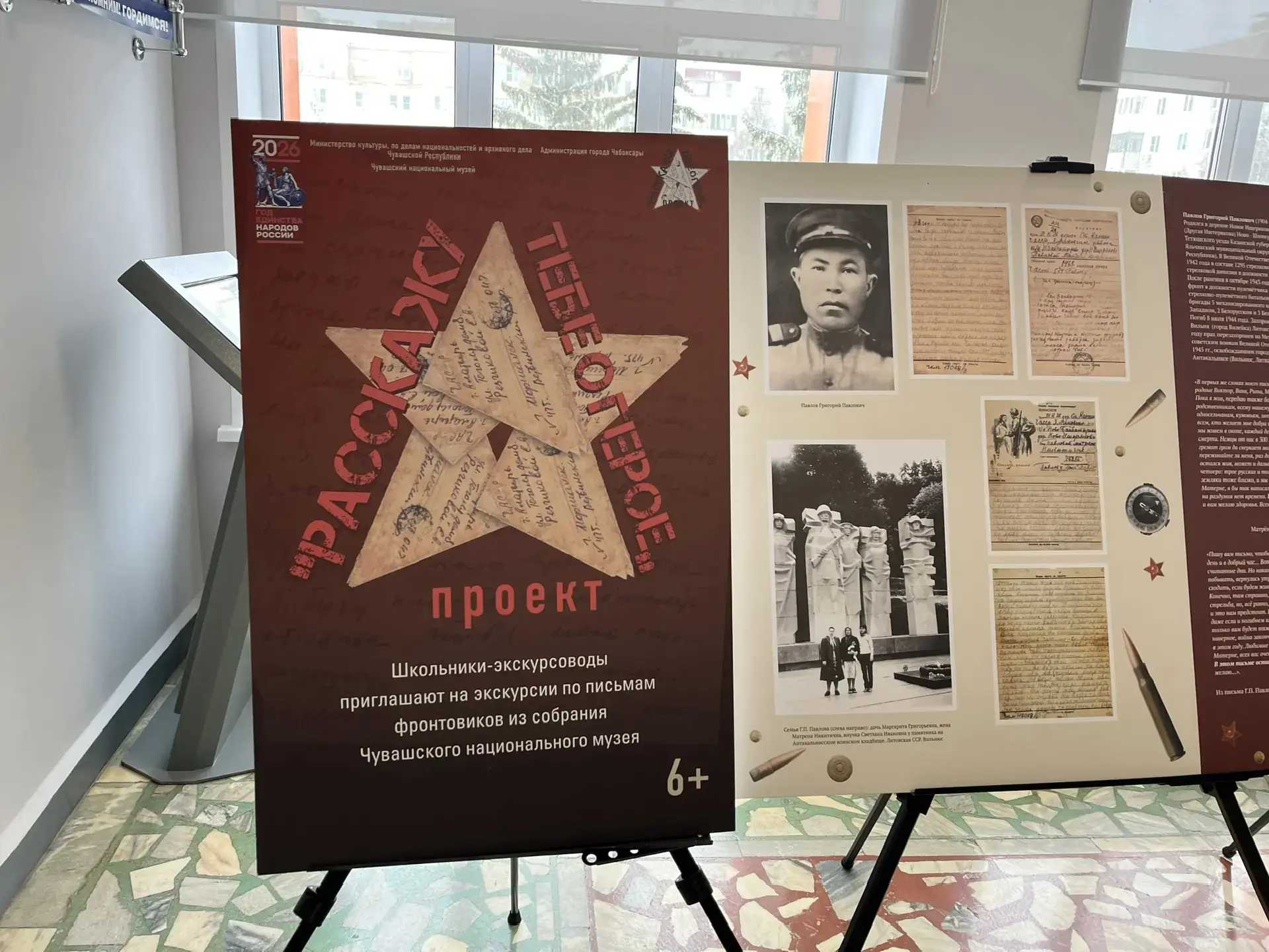 26 февраля, в рамках проекта Чувашского национального музея «В этом письме остаюсь жив», ребята 6 класса вместе с классным руководителем Гуляевой Т.В. посетили уникальную передвижную выставку «Расскажу тебе о герое». Ребята ознакомились с экспонатами демонстрирующими фотографии, рисунки, фронтовые письма солдат наших земляков к родным и близким.