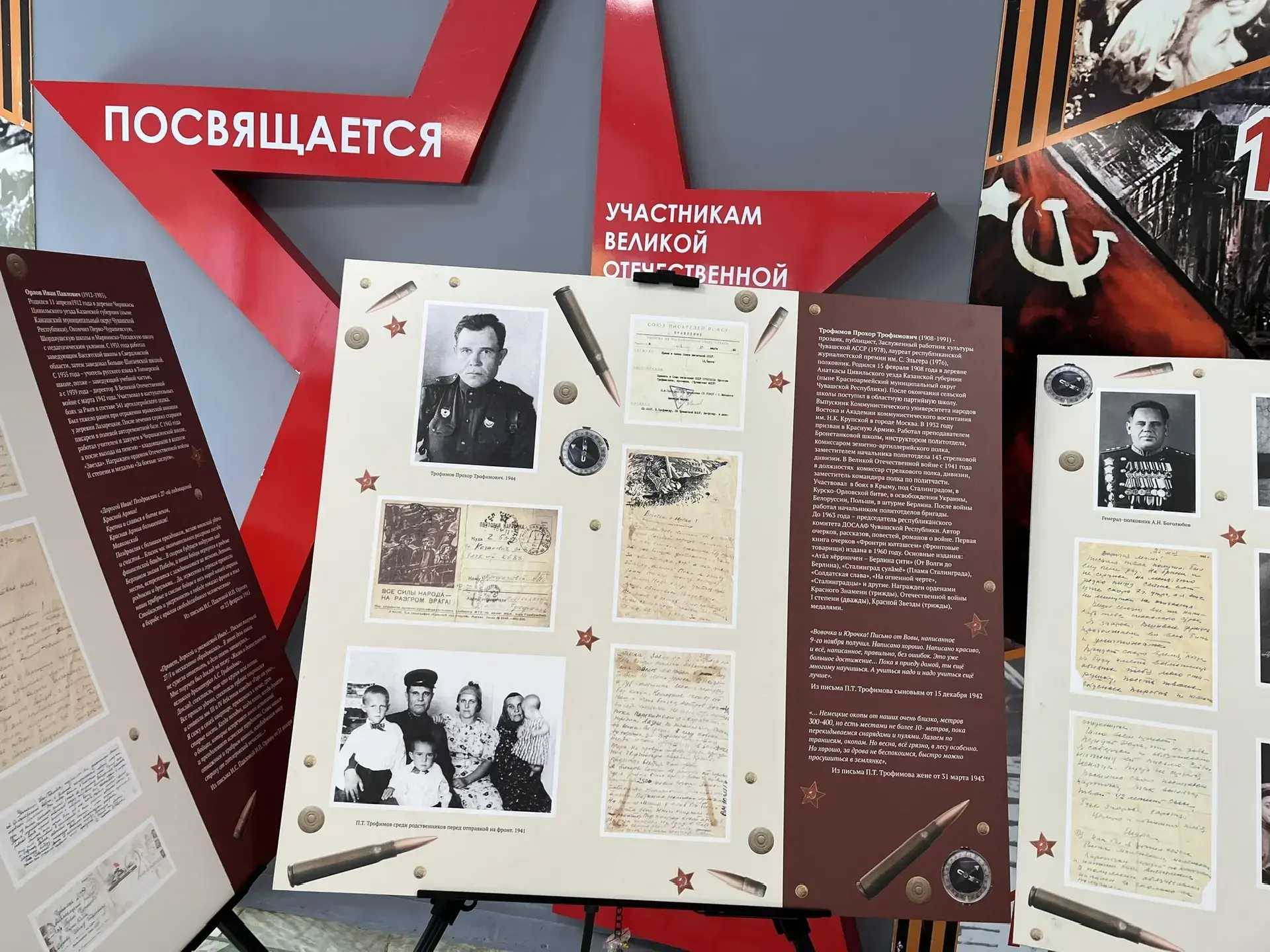 ☝️Особый интерес вызвали экспонаты с фрагментами писем Героя Советского Союза Винокурова Вячеслава Петровича, чувашского писателя Евстафьева Николая Филипповича, Героя Советского Союза Боголюбова Александра Николаевича, адресованное своей матери в мае 1942 года.