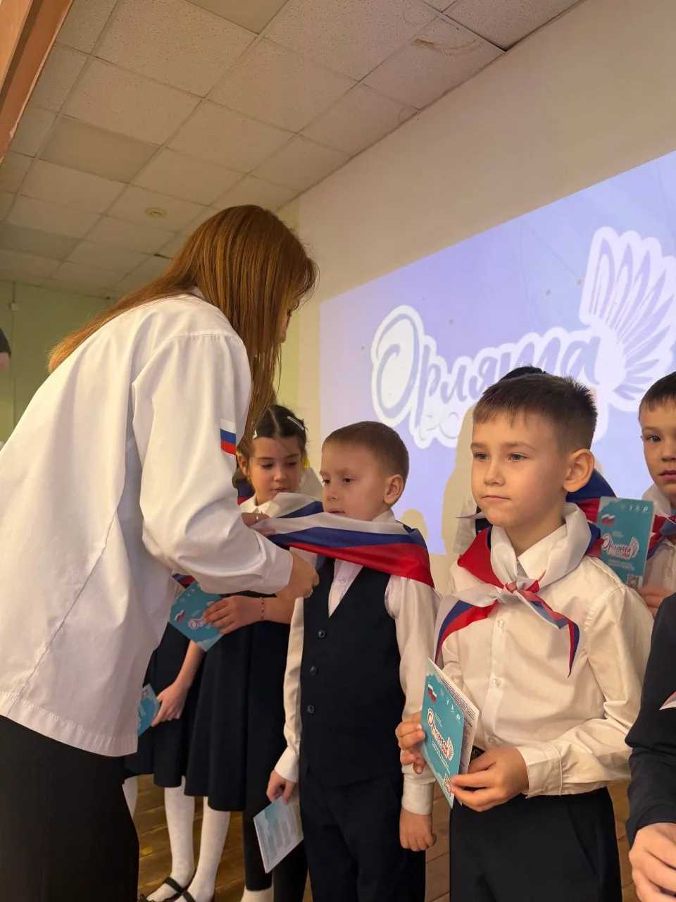 📄После торжественного посвящения каждому новому Орлёнку был вручён сертификат члена движения и повешен символический галстук Орлят России на шею.