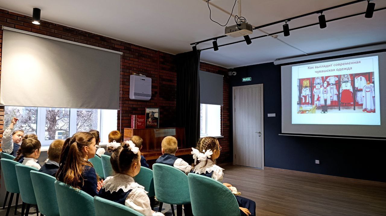 ✅Встреча началась с познавательной слайд-презентации "Удивительная чувашская вышивка". Ребята узнали о составных элементах традиционного чувашского костюма, познакомились с многообразием вышивки и значении каждого цвета в узорах.