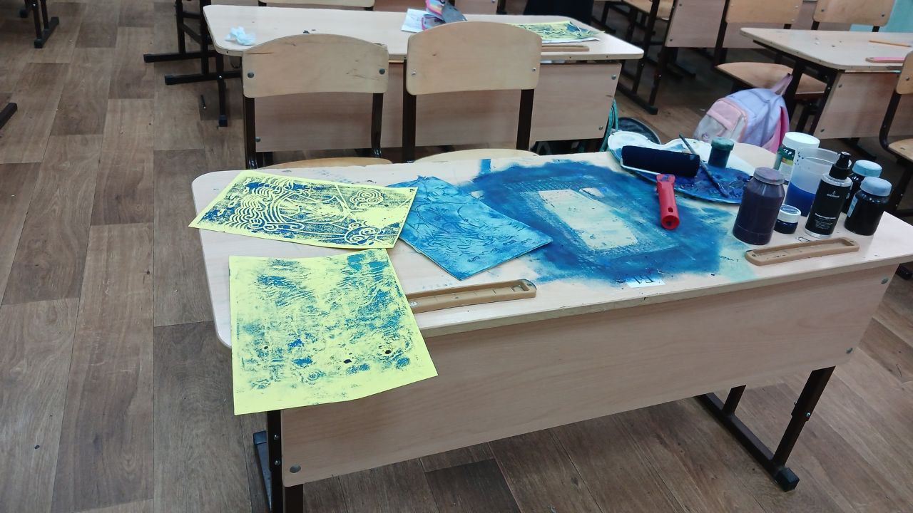 🔸После теоретической части ученики смогли попробовать себя в искусстве гравюры. Под чутким руководством педагога-художника Елены Калининой дети создали свои первые творческие работы в этой необычной технике. Каждый участник изготовил собственную форму для печати и создал уникальный оттиск своего рисунка.