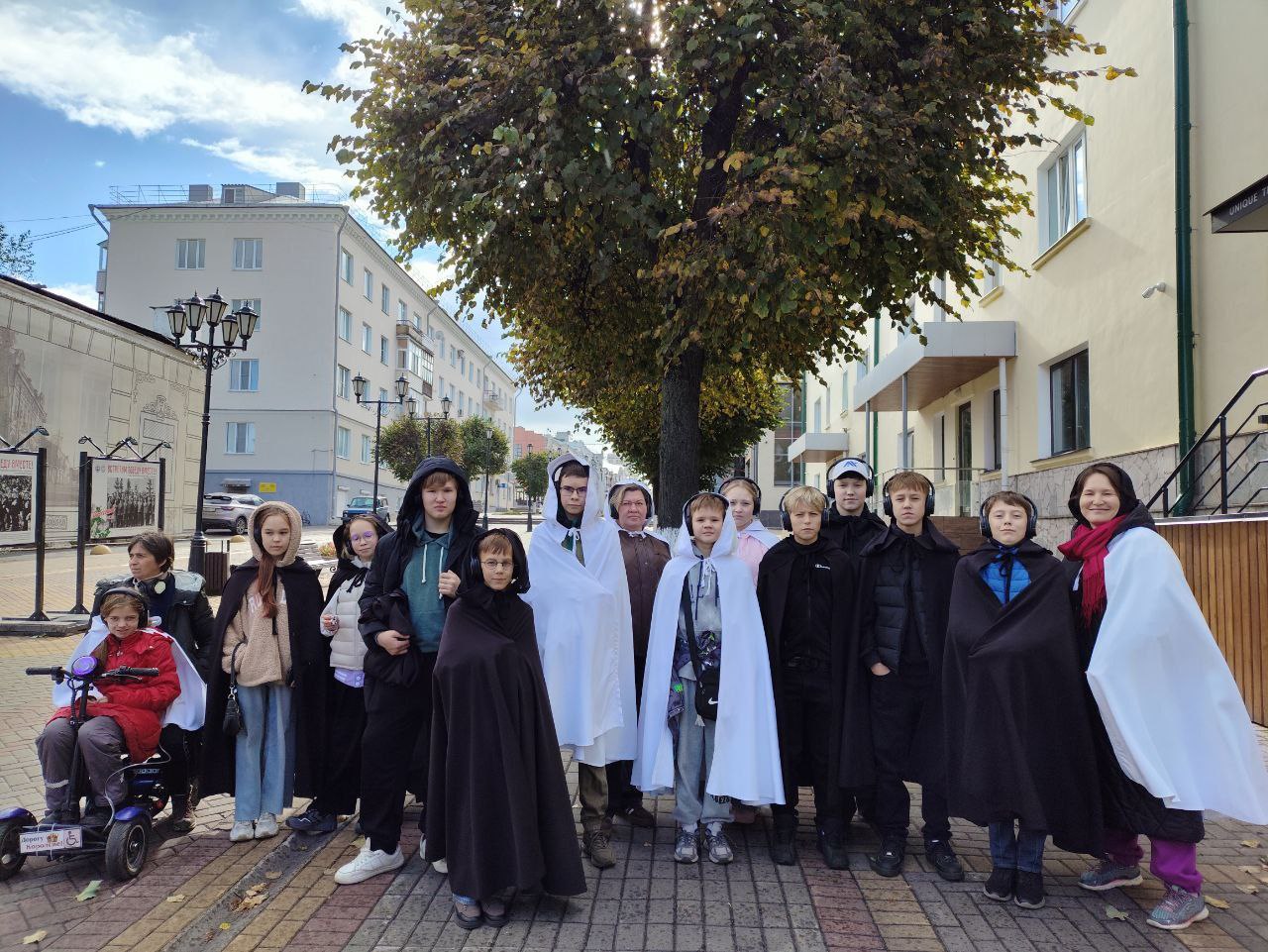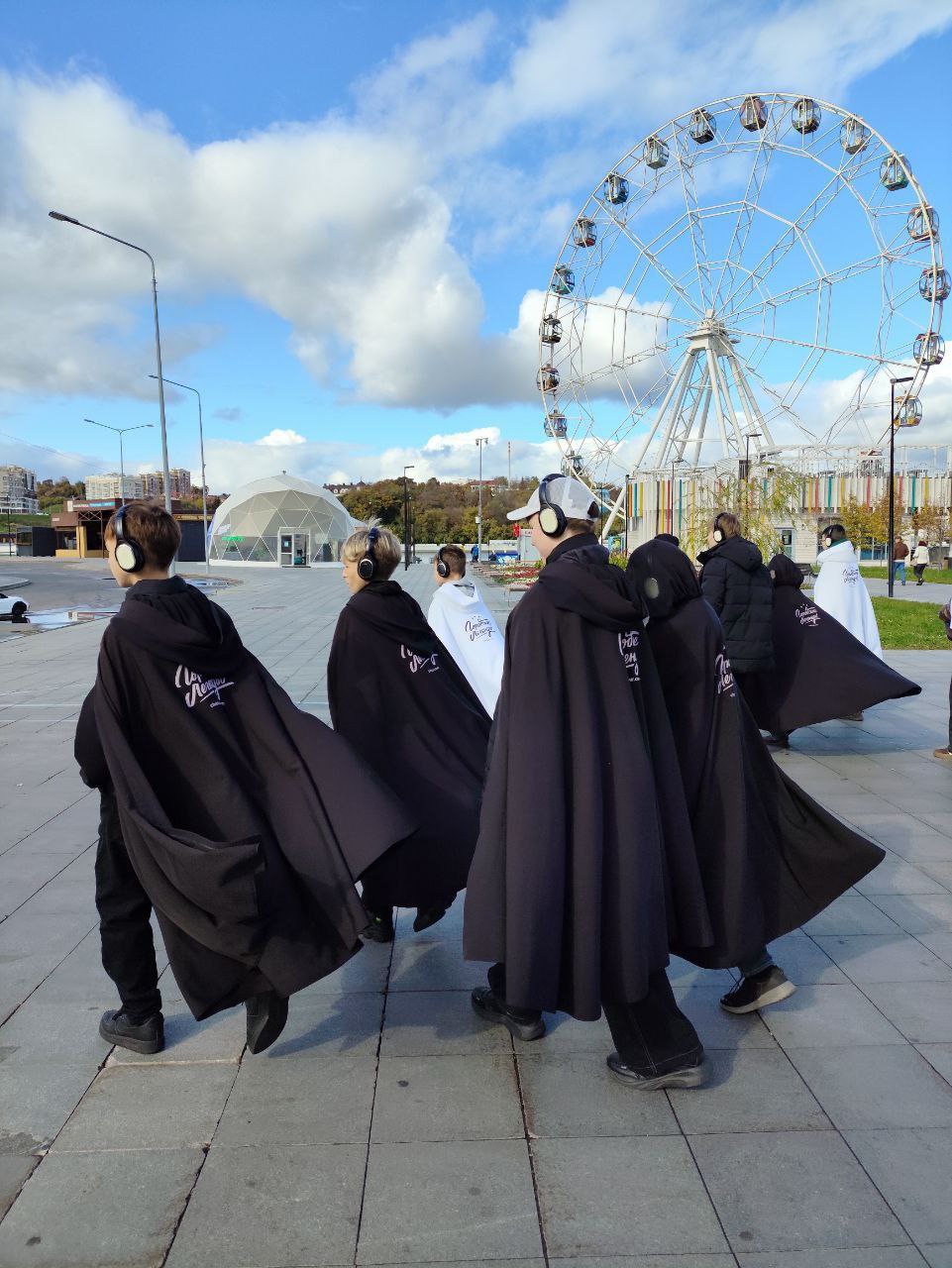 ✨А также обучающиеся 6 класса стали участниками променад-спектакля "Нити судьбы" - это увлекательная прогулка-знакомство с историческим прошлым столицы Чувашии в стереонаушниках и брендированных плащах.
