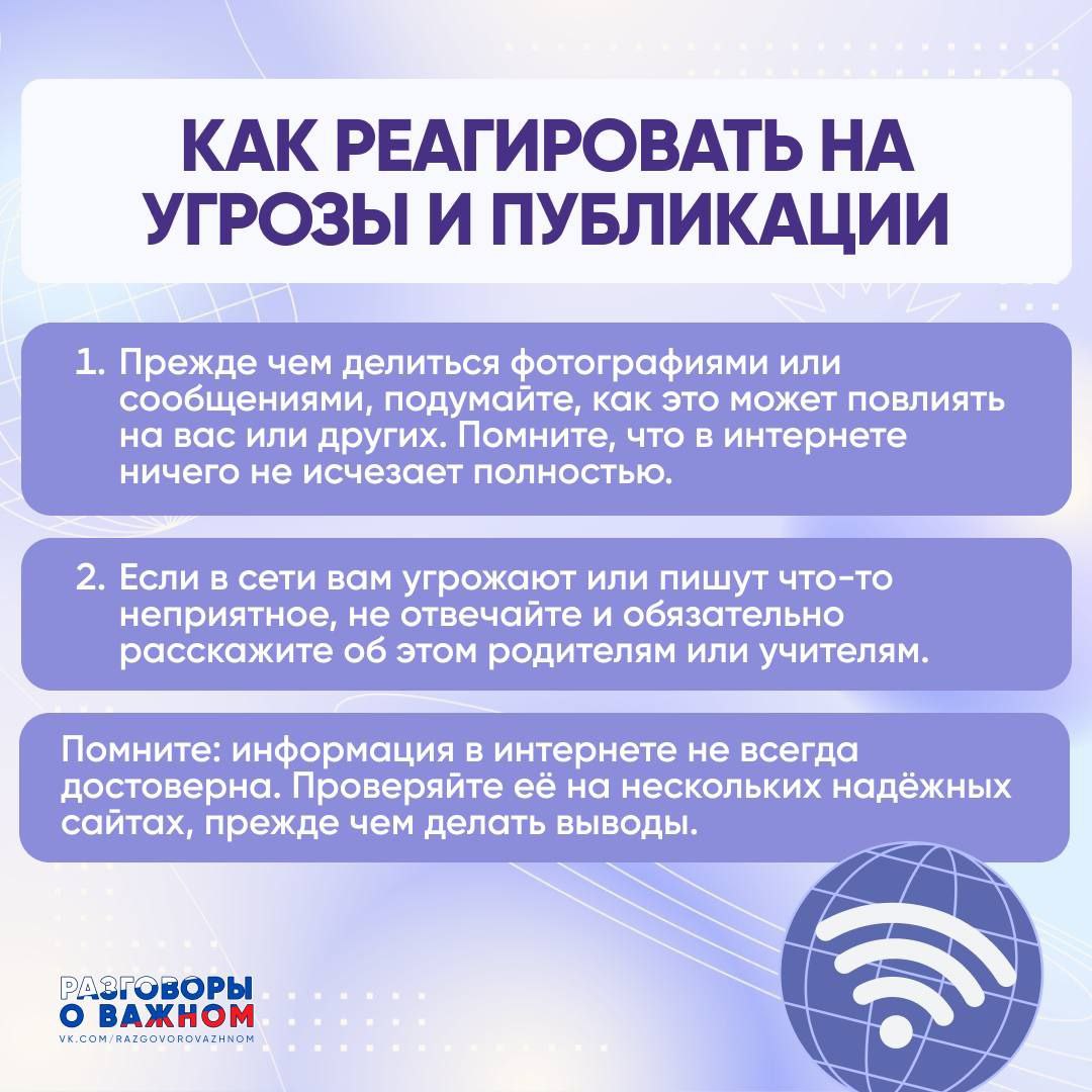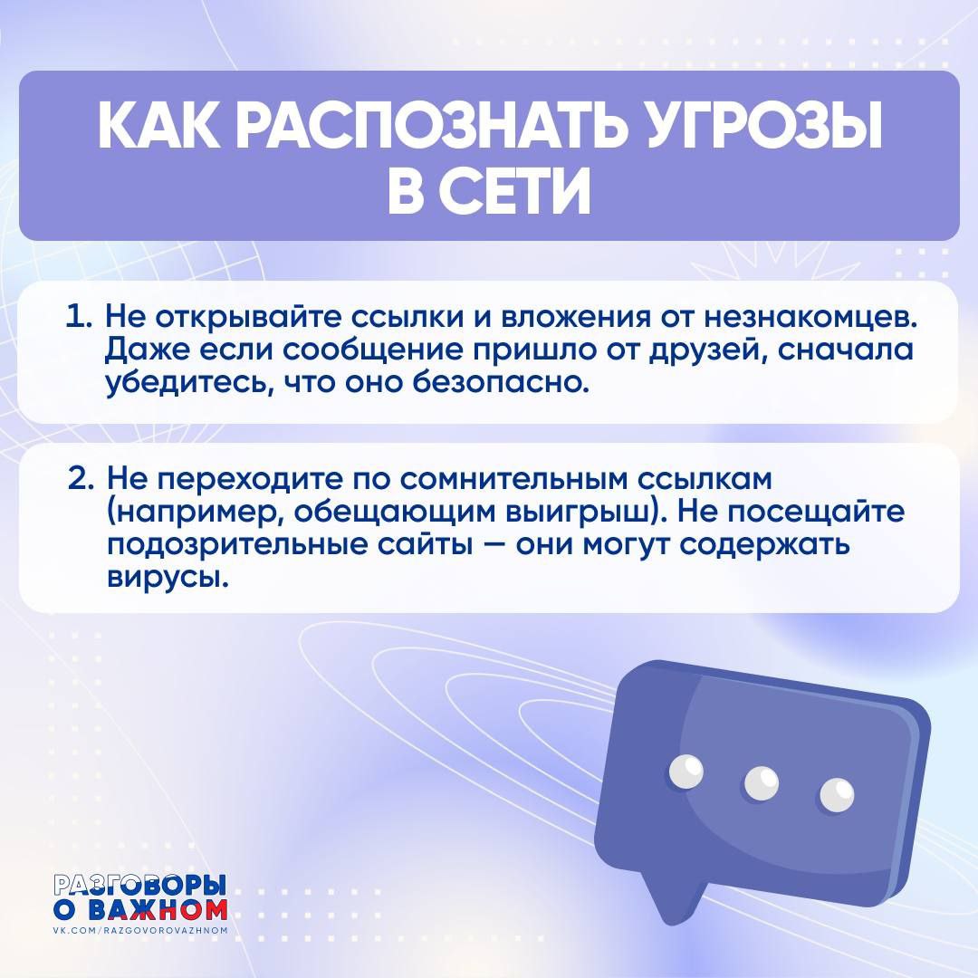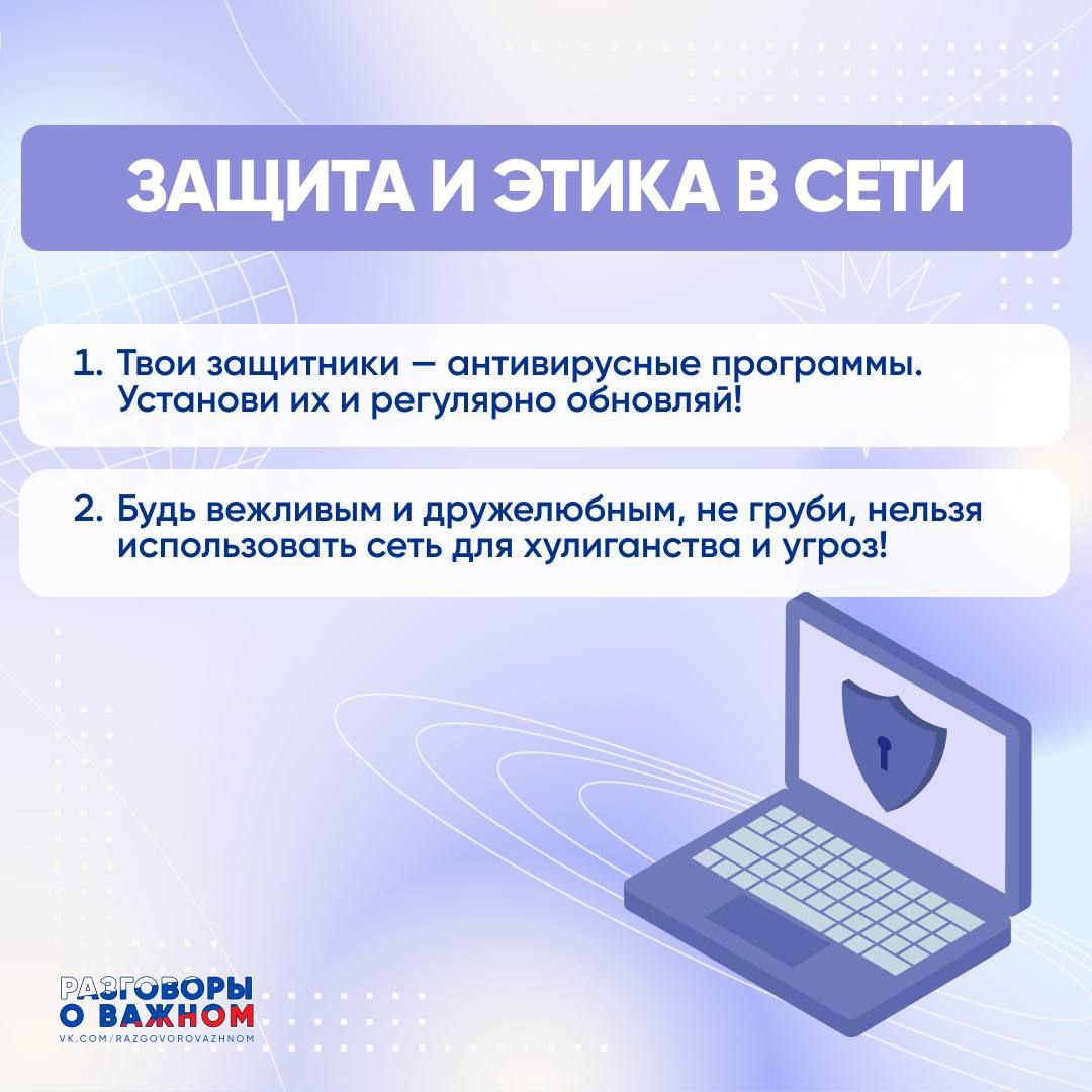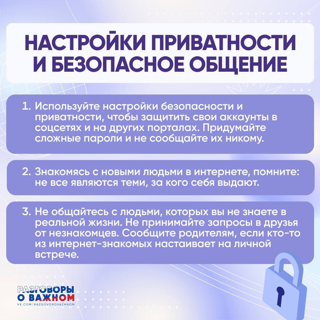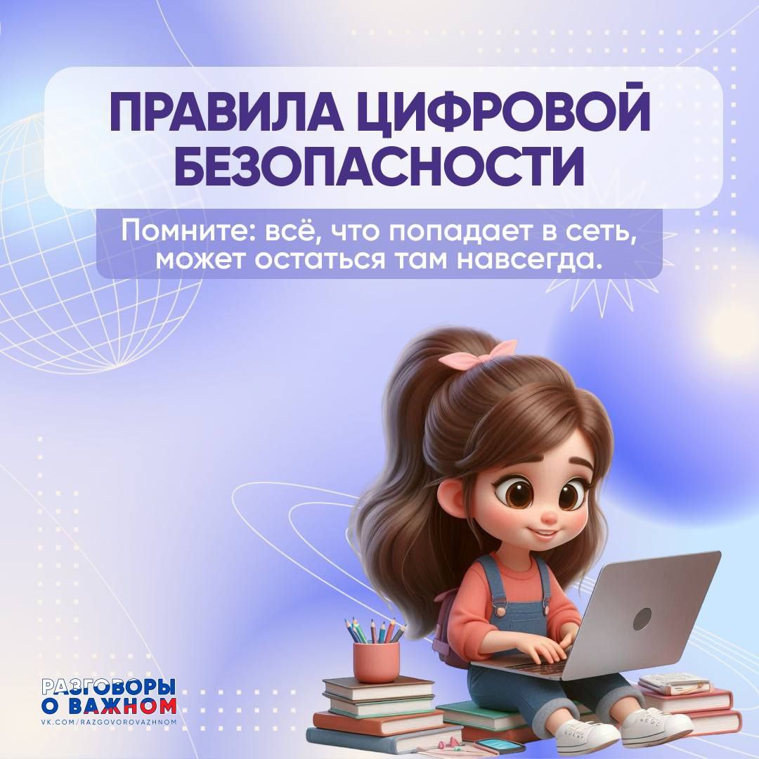 ☝️Просим вас внимательно ознакомиться с размещёнными карточками по правилам цифровой безопасности. Эти рекомендации помогут вам обезопасить себя и своих детей в виртуальном пространстве, избежать мошенничества и сохранить личные данные.