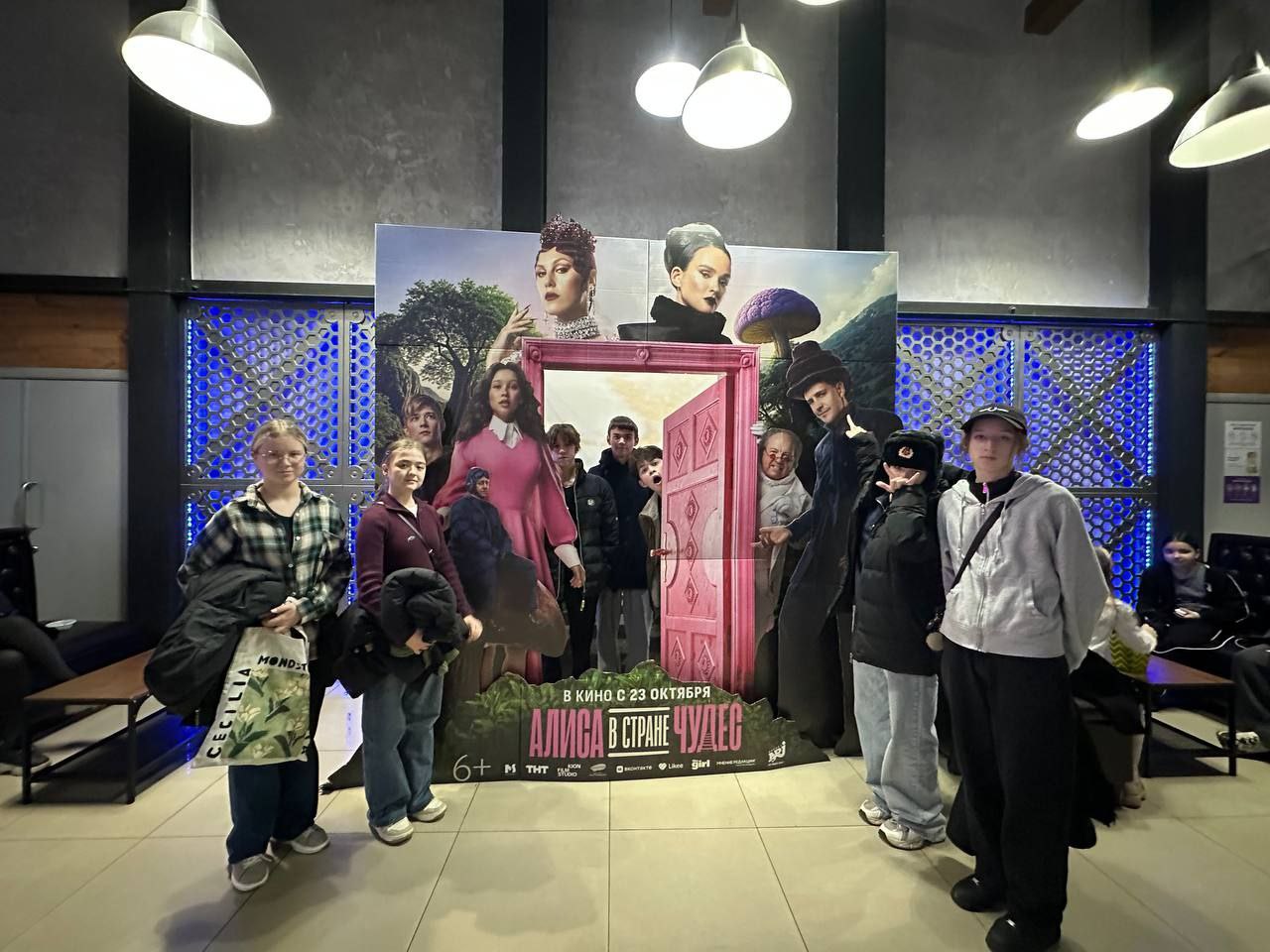 🔸8 класс - посетили кинотеатр и посмотрели фильм "Алиса в стране чудес". По сюжету 15-летняя Алиса попадает в Страну чудес, где солнце всегда в зените и нет времени. Среди жителей она узнаёт своих родных, знакомых и друзей, но никто из них не узнаёт Алису. Она для них чужая. Чтобы вернуться домой, Алисе предстоит преодолеть множество препятствий и странностей.
