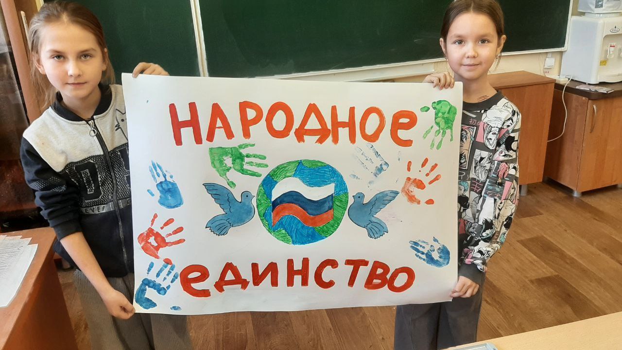 Накануне Дня народного единства наши школьники из группы кратковременного пребывания детей «Рябинка» создали яркий и трогательный плакат, посвященный этому важному событию.