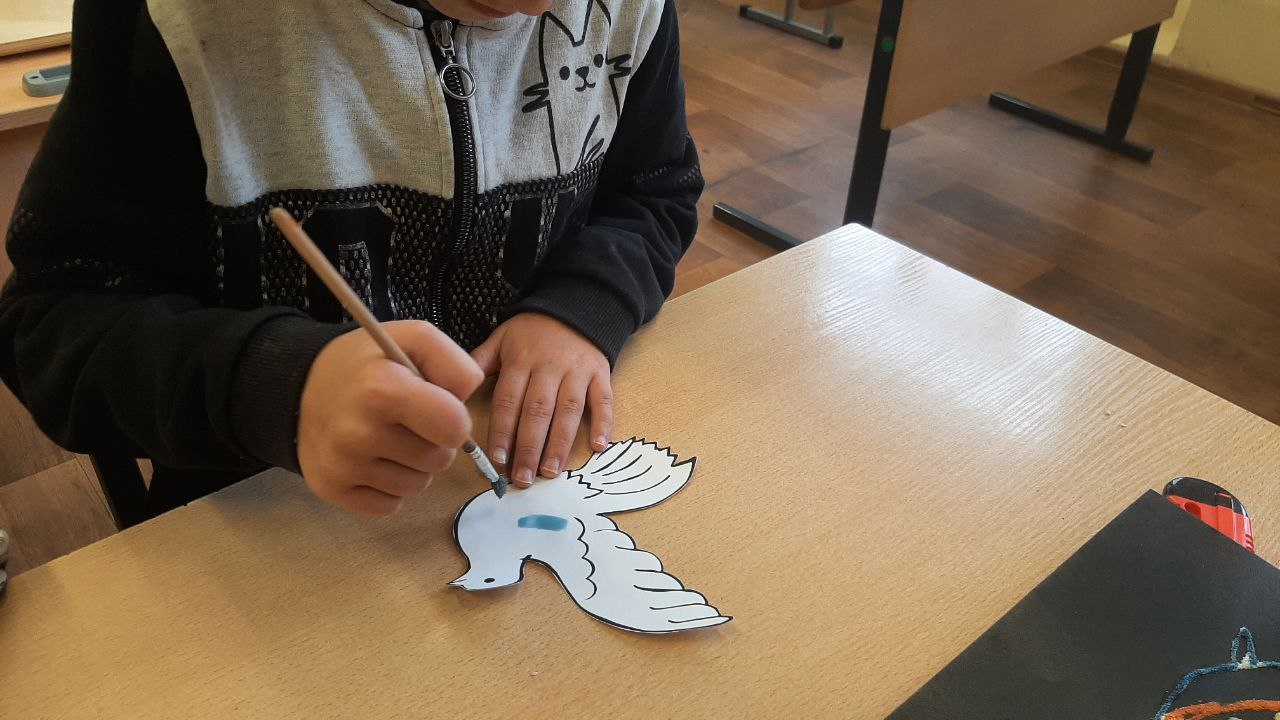 🖌️🕊️Дети проявили фантазию и творчество, украсив свою работу бумажными голубями — символами мира и согласия, а также яркими отпечатками ладошек, символизирующими дружбу и единение.