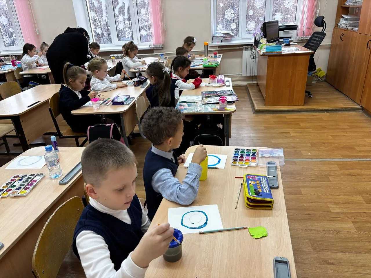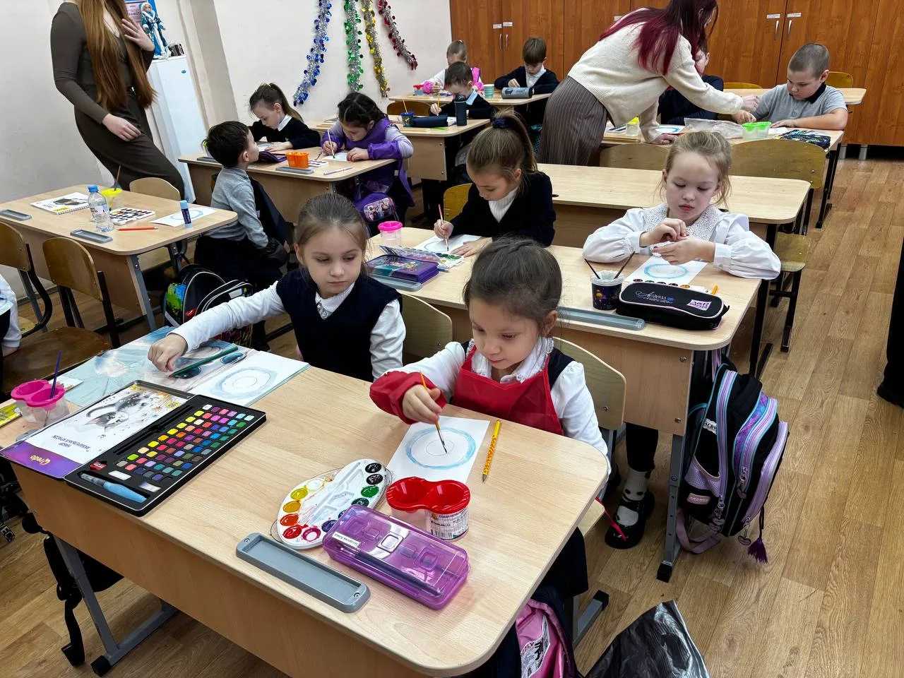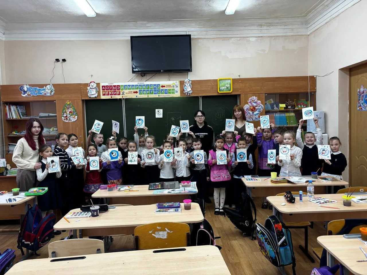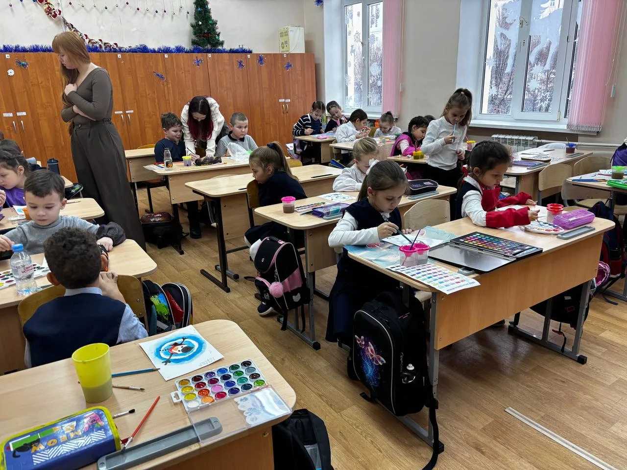 🔸Еще один урок прошел в 1 классе. Классный руководитель Демина Марина Александровна вместе со студентами - практикантами из ЧГПУ им. И. Я. Яковлева провели мастер-класс «Открытка на Новый год».