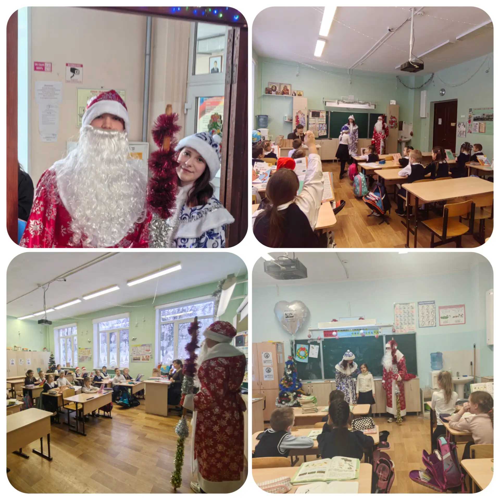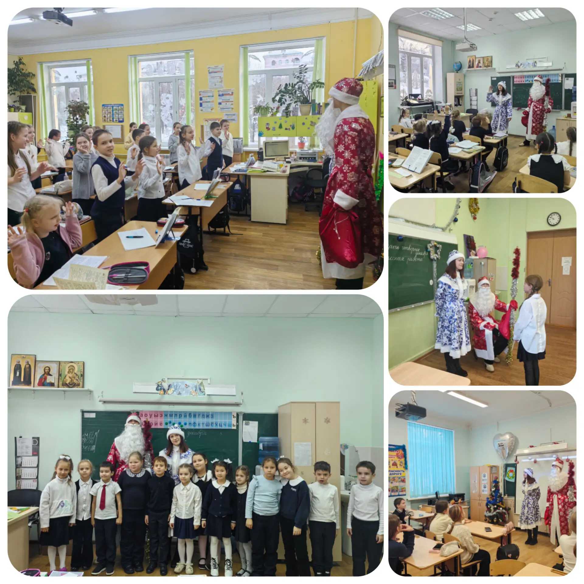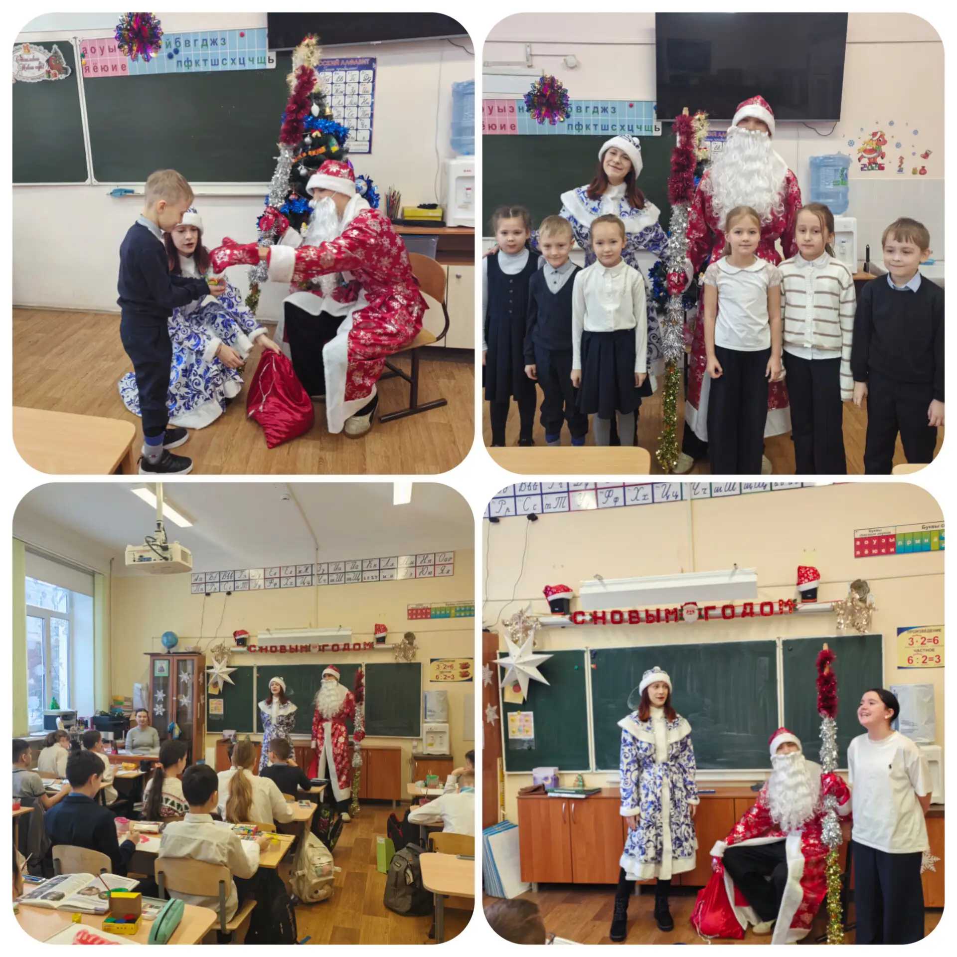 🌟В канун новогодних праздников обучающиеся нашей школы получили незабываемые впечатления благодаря визитам Деда Мороза и Снегурочки. Они обошли младшие классы, поздравляя ребят с предстоящими праздниками.