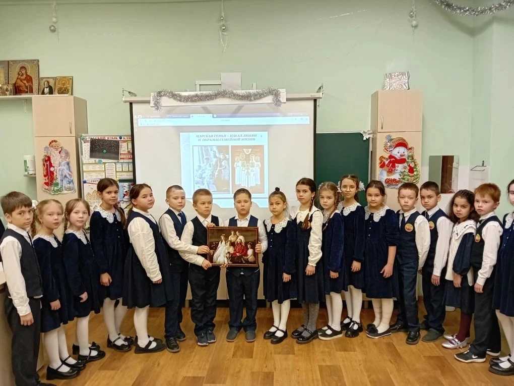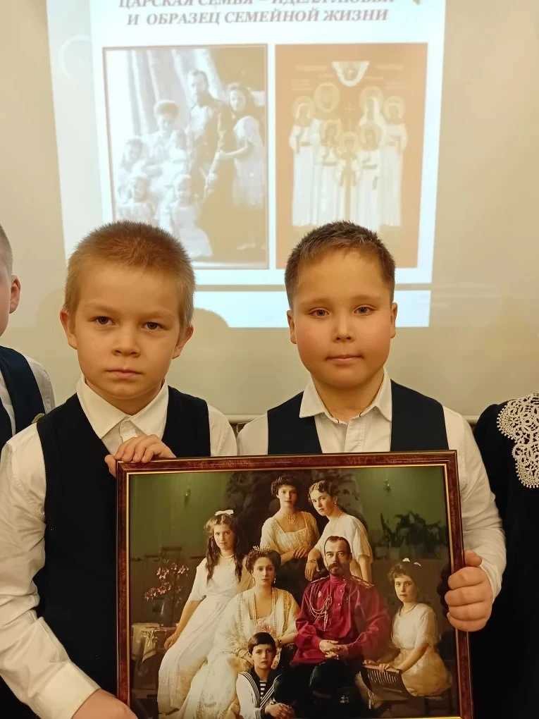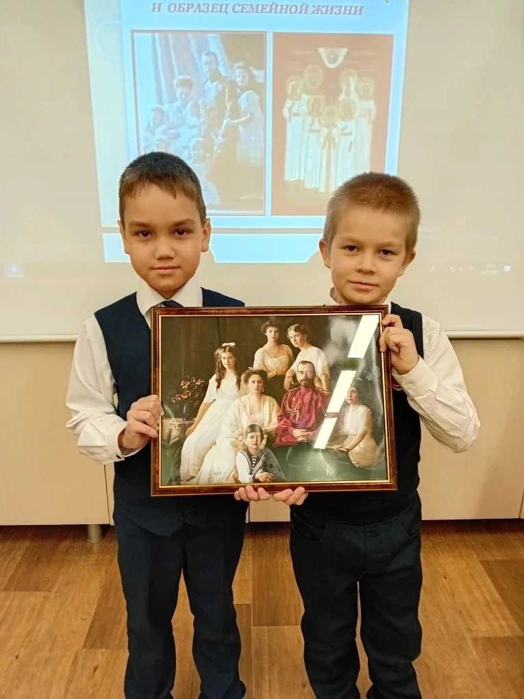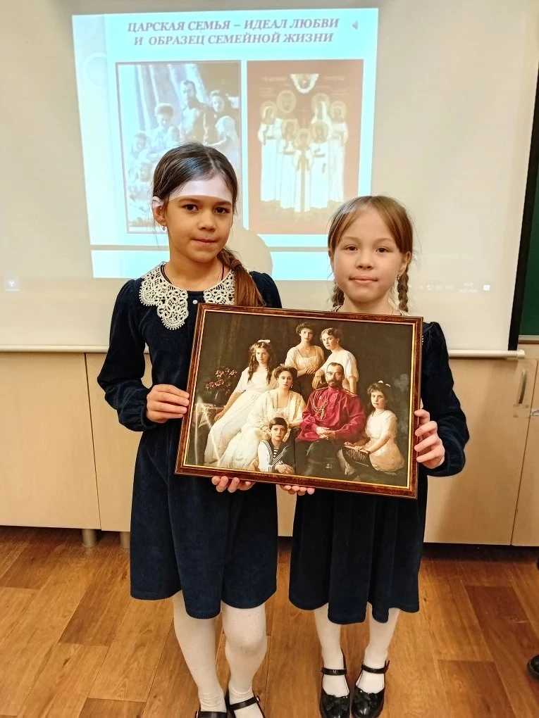 Родители обучающихся 2 класса с углубленным изучением православной культуры имени преподобного Сергия Радонежского подарили классу картину императорской семьи Николая ll. Классный руководитель Быкова Надежда Витальевна провела для детей познавательное занятие.