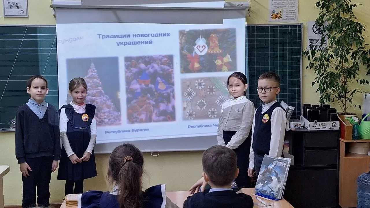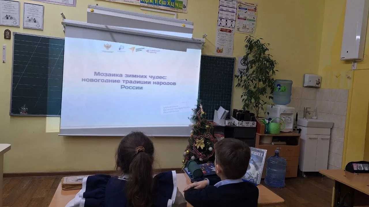 Советник директора по воспитанию Андреева Анна Алексеевна и учитель начальных классов Родионова Ксения Андреевна провели интересное занятие "Мозаика зимних чудес" с обучающимися 2 класса, посвящённое новогодним традициям разных народов России.