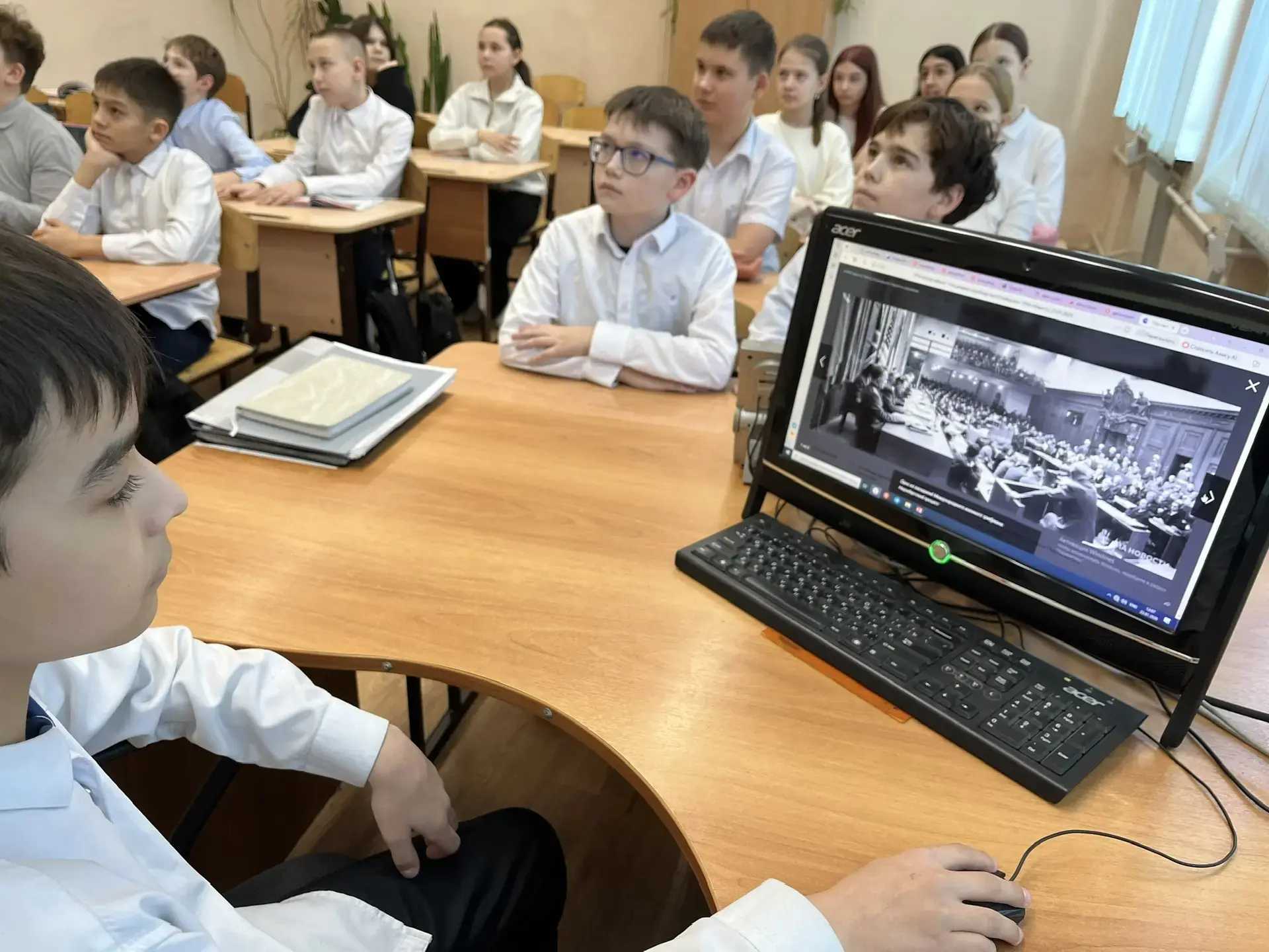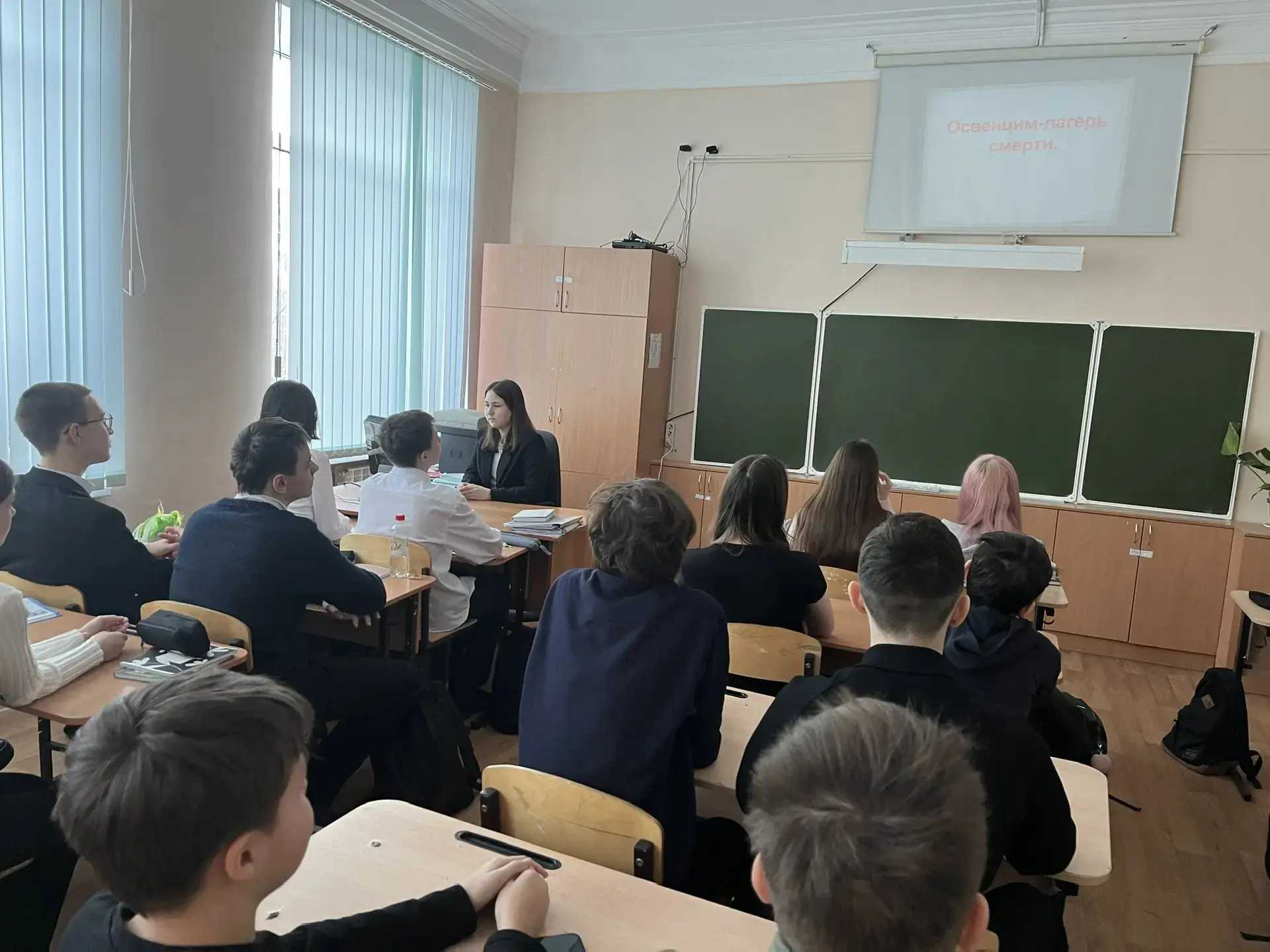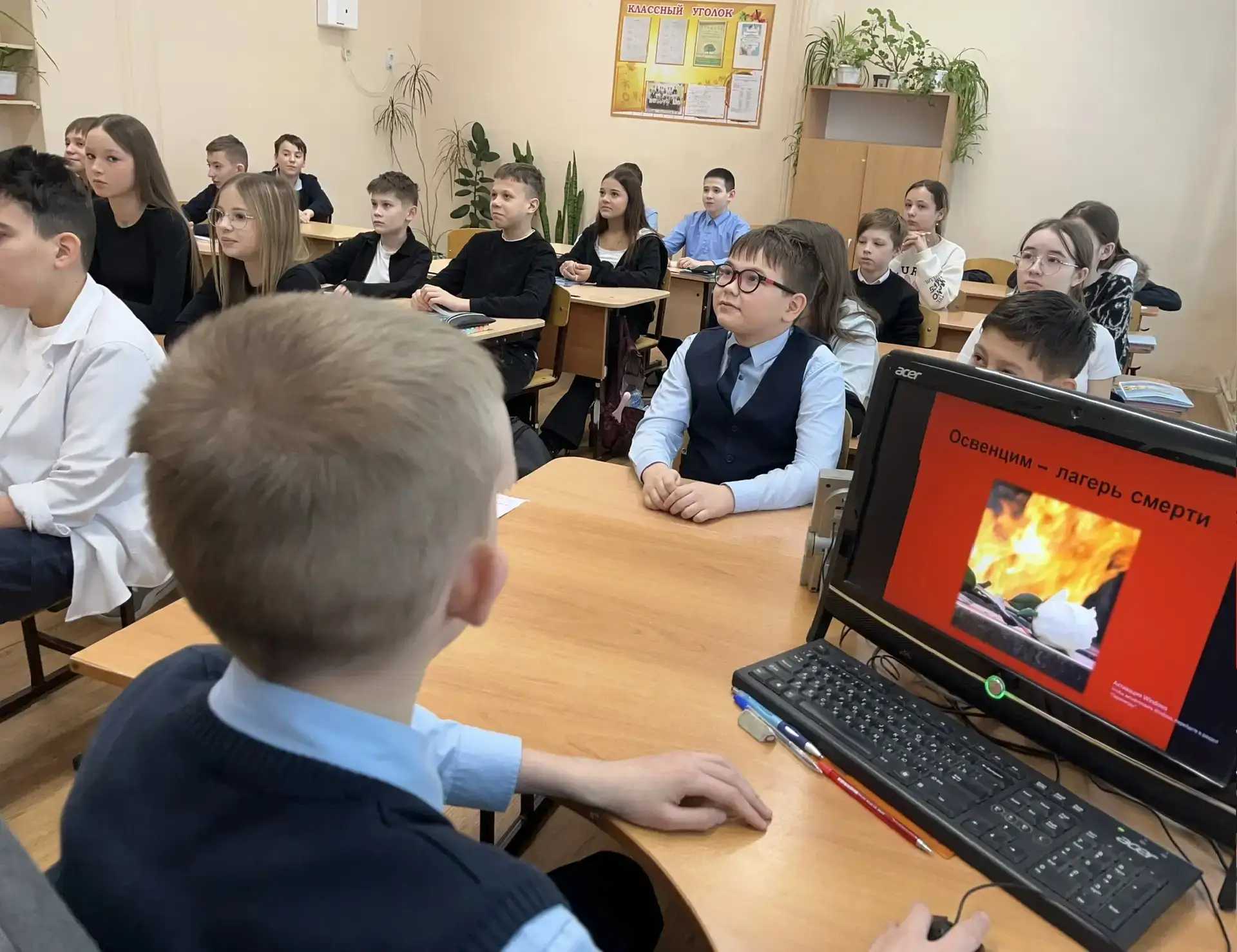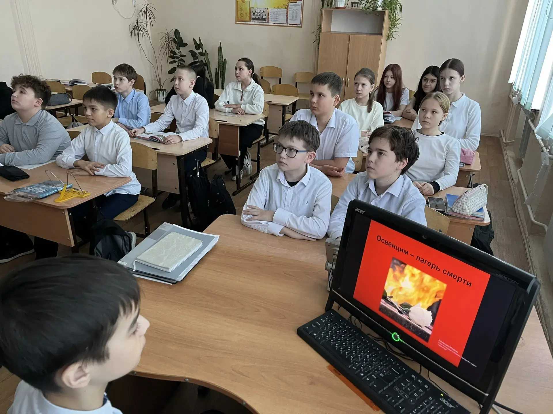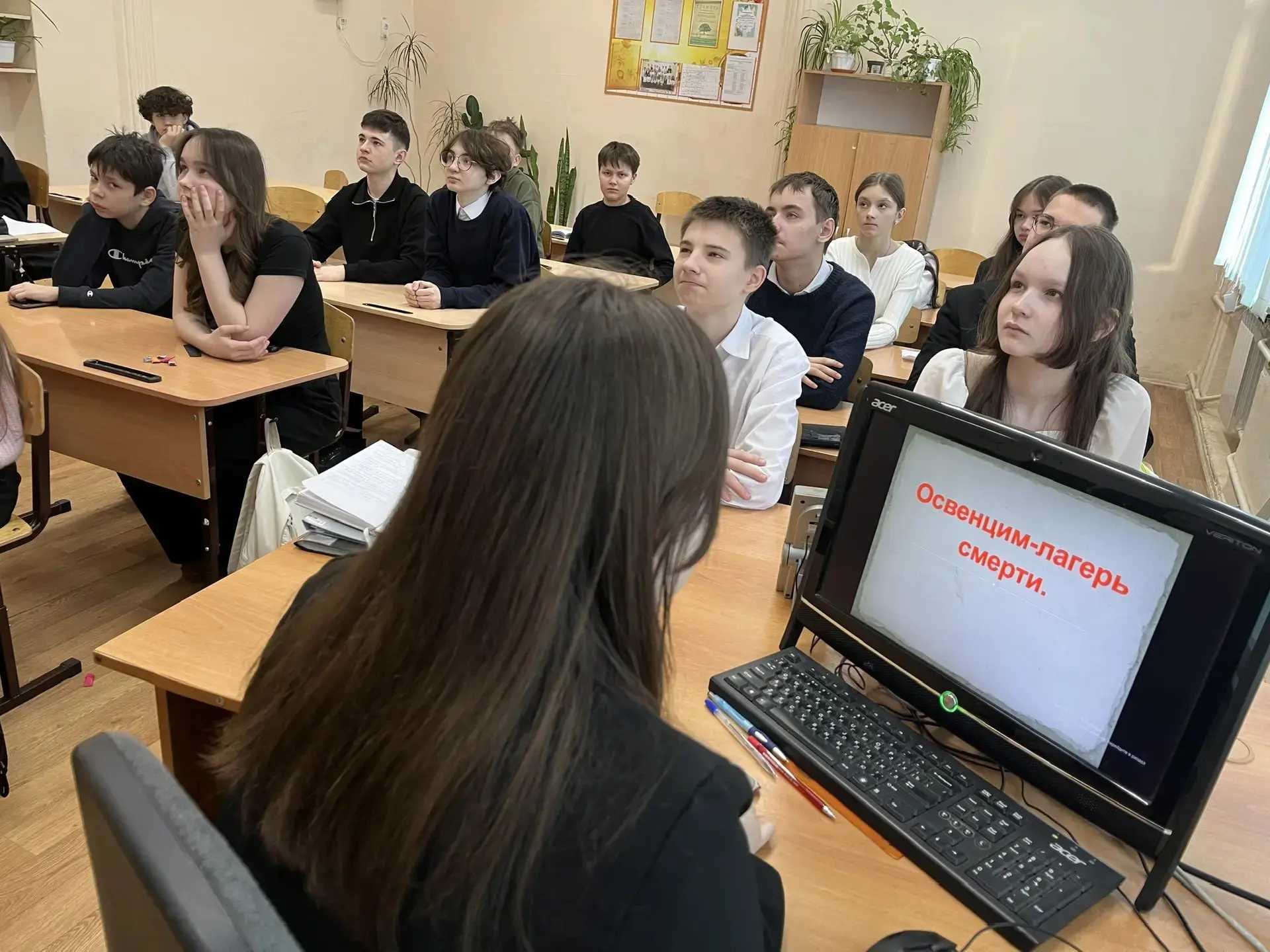 🔸Ребятам рассказали об условиях содержания заключенных. А после они посмотрели документальный фильм «Освенцим», снятый в 1945 году операторами 1-го Украинского фронта, освободившими лагерь 27 января 1945 года. Этот день сейчас отмечается как Международный День памяти жертв Холокоста.