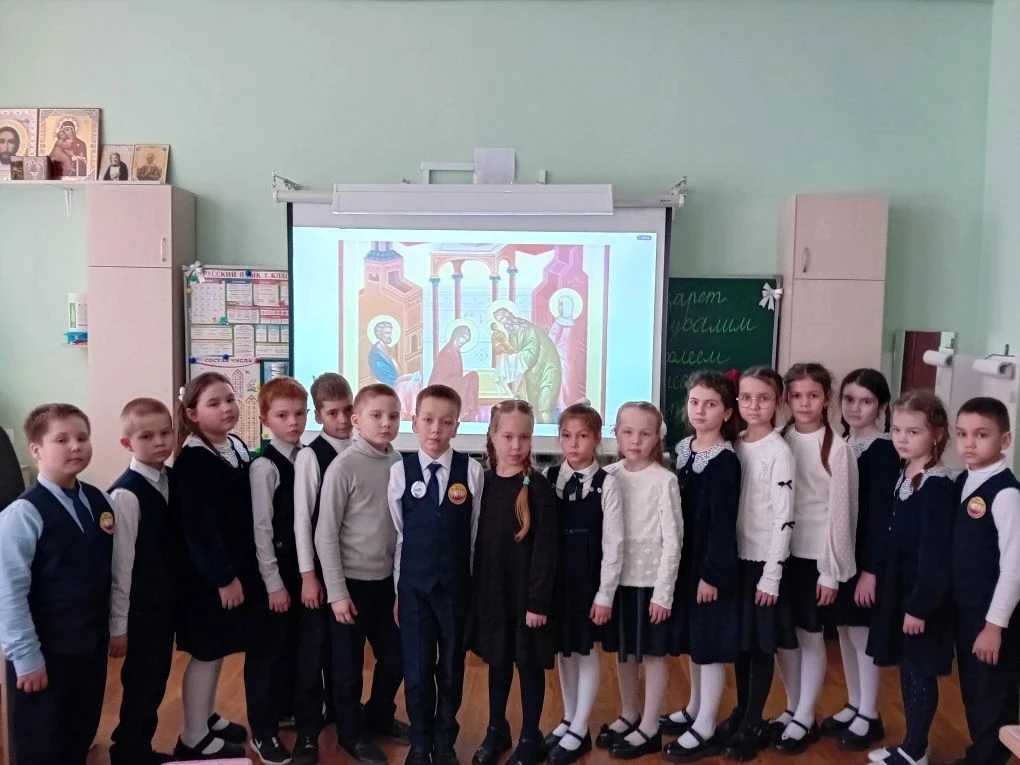 13 февраля во втором классе имени преподобного Сергия Радонежского с углубленным изучением православной культуры был особенным – дети говорили о празднике Сретения Господня.