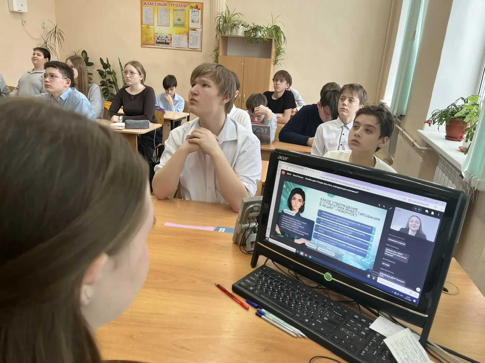 Сегодня, в рамках весенней сессии онлайн- уроков финансовой грамотности в 7-ых классах прошёл урок на тему: «Акции: как стать совладельцем компании?».