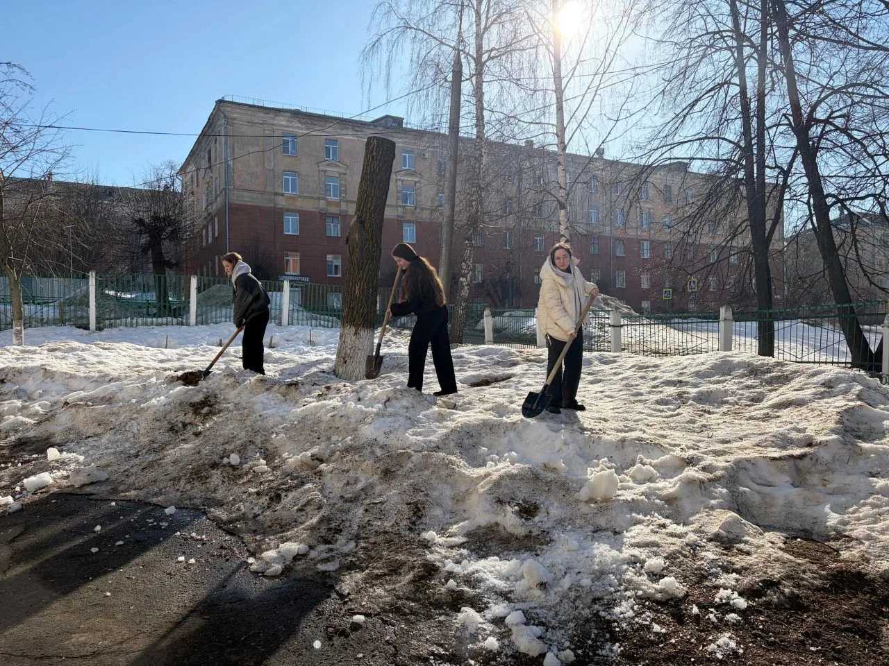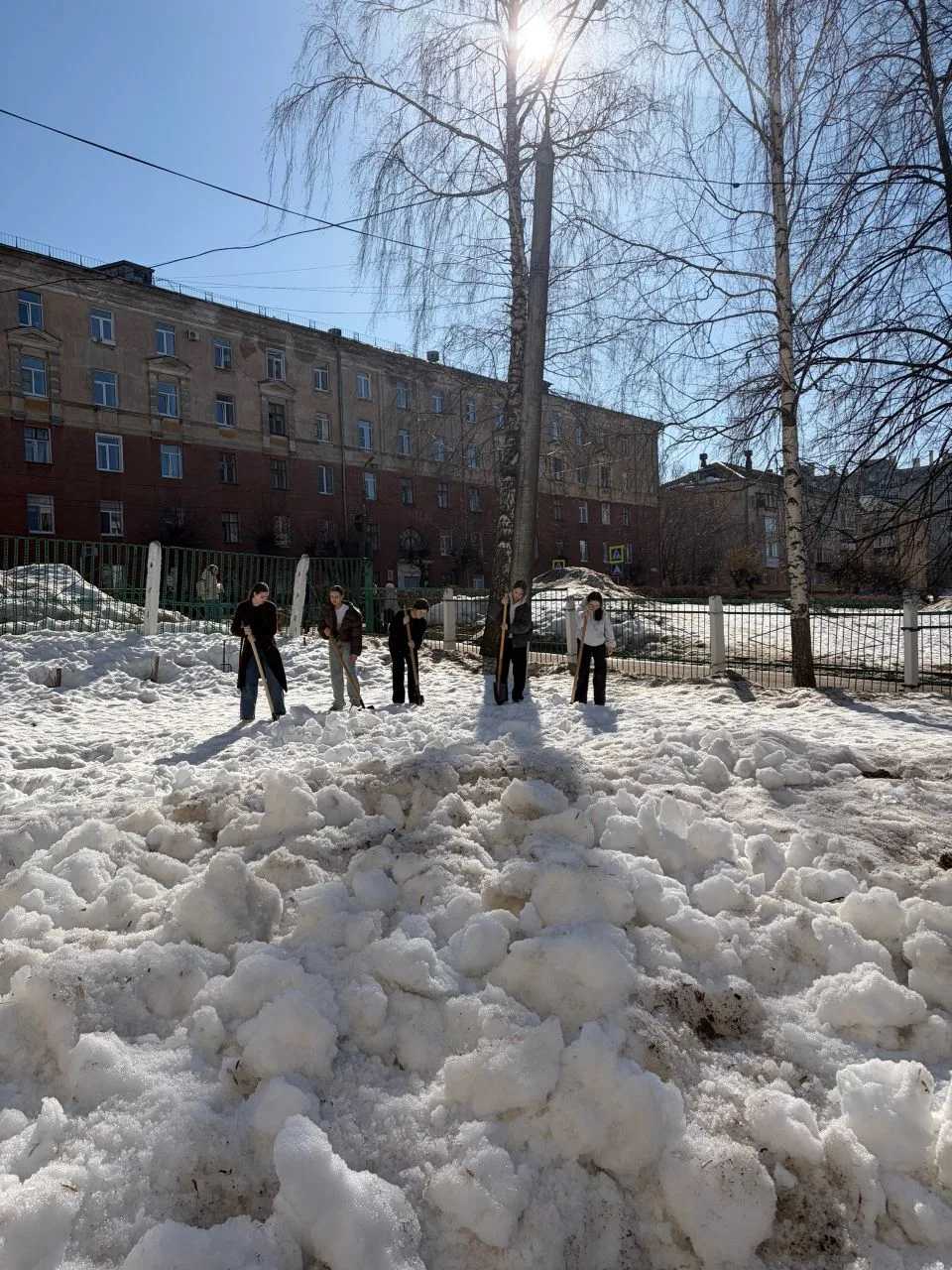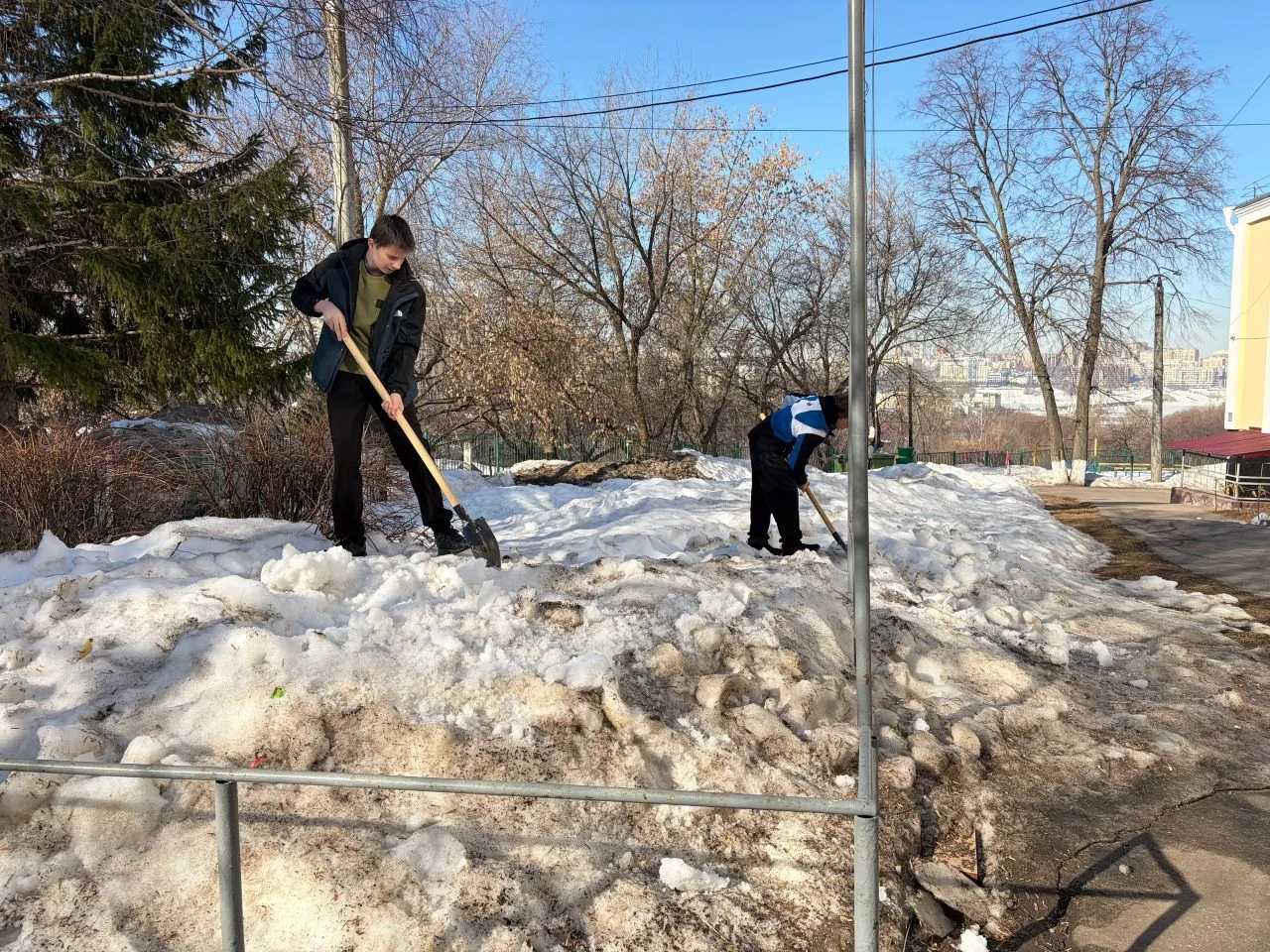 ✅Даже в весенние школьные каникулы наша трудовая бригада не сидит без дела! ☝️Сегодня ребята продолжают разрыхлять снег на территории школы. ☀️День выдался по-настоящему весенним — солнечным и тёплым, так что совсем скоро все сугробы растают и школьный двор преобразится.