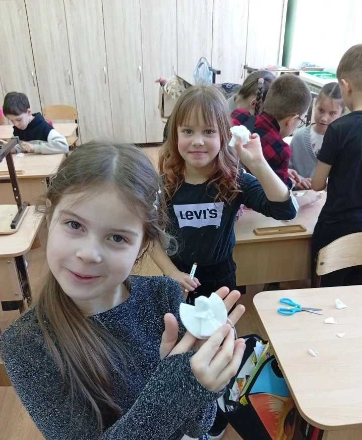 ✨Вернувшись в школу, ребята приняли участие в творческом мастер-классе по изготовлению ангелочков из ватных дисков. Каждый ребёнок смог проявить фантазию, украсить свою поделку и забрать её домой. Было предложено использовать ангелочков в качестве пасхальных украшений и домашнего декора.