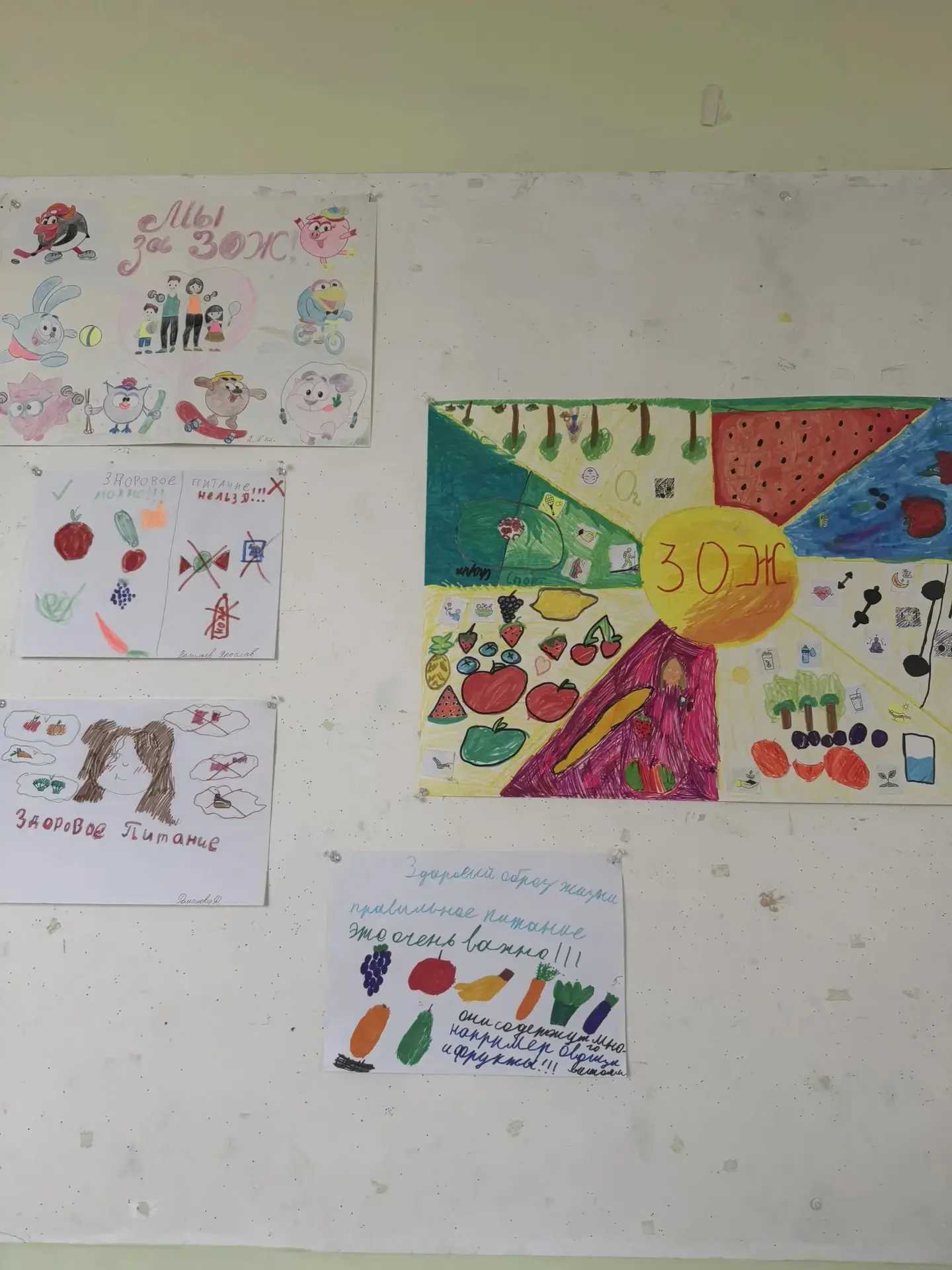 🎨 На стенде— работы, каждая из которых по-своему уникальна. Здесь и призывы к активному отдыху, и напоминания о пользе овощей и фруктов. Каждый плакат — это не просто рисунок, а личная позиция юного художника, его взгляд на то, как сделать мир здоровее.