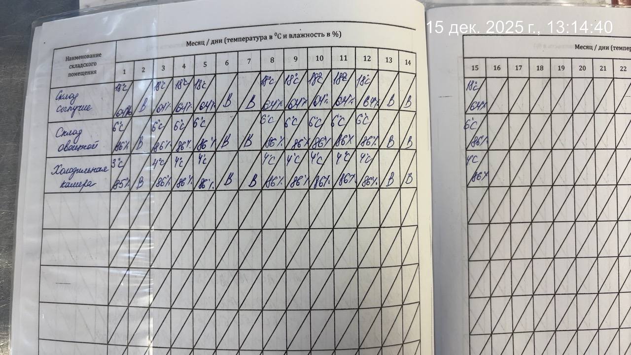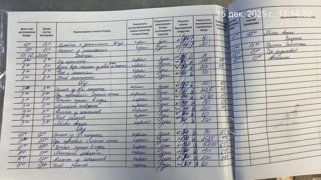 - Наличие записей в бракеражном журнале готовых блюд