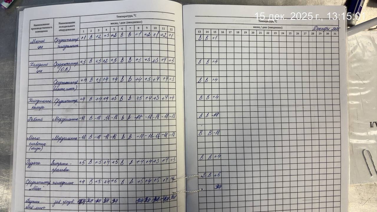 - Журнал учета температурного режима холодильного оборудования