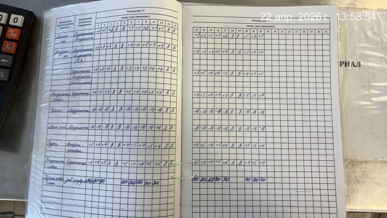 Журнал учета температурного режима холодильного оборудования