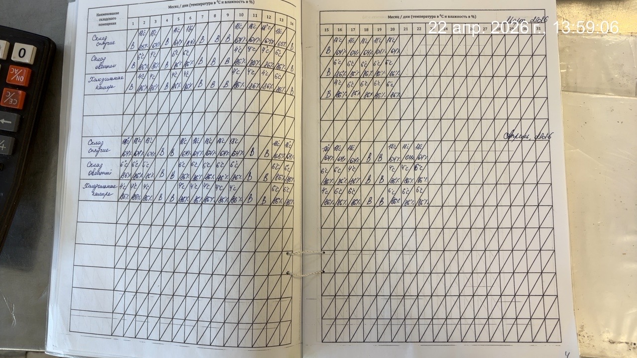 - Журнал учета температуры и влажности в складских помещениях