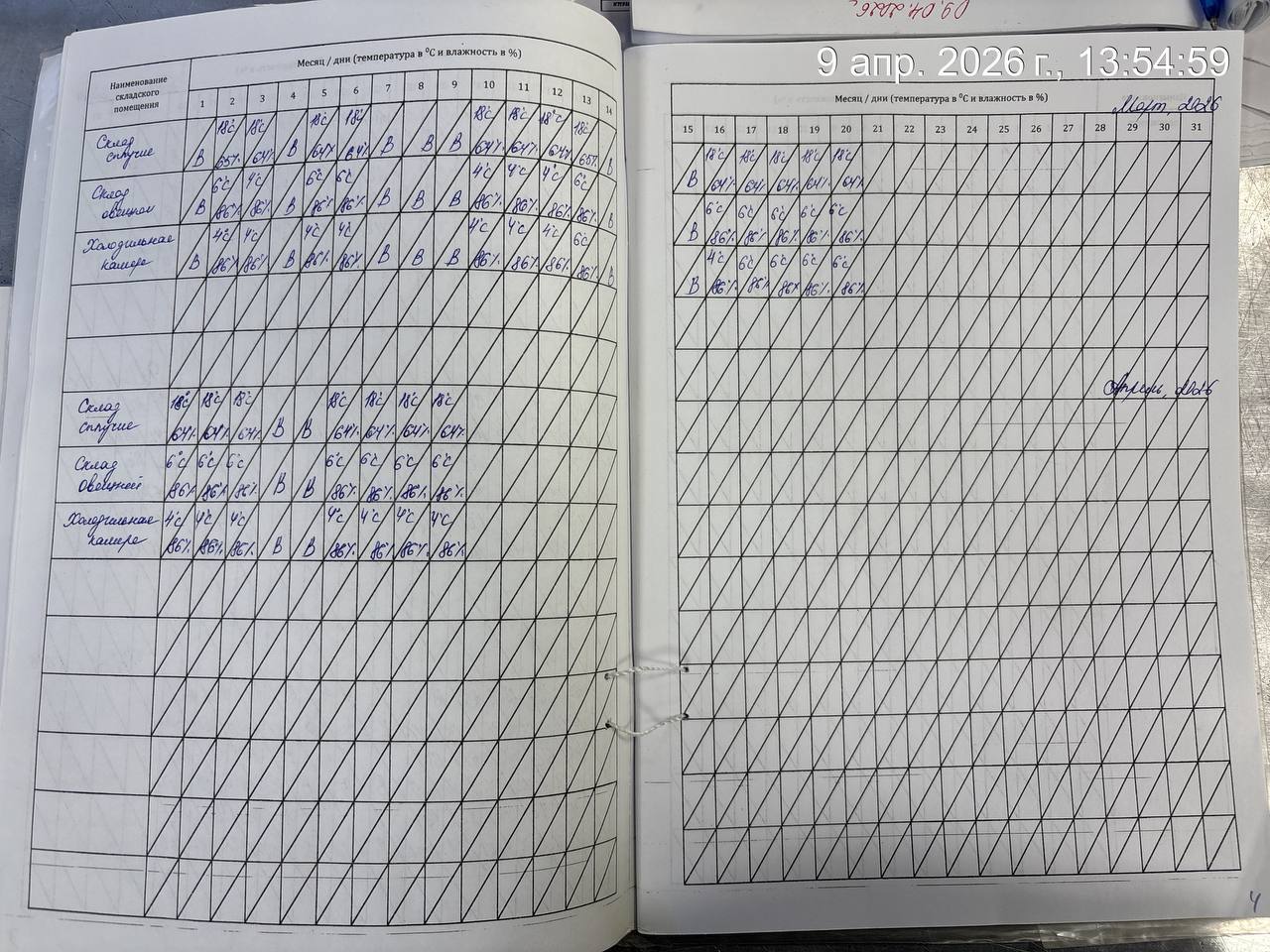 - Журнал учета температуры и влажности в складских помещениях