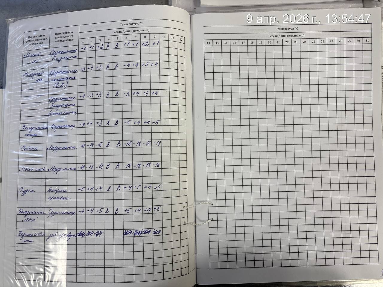 Журнал учета температурного режима холодильного оборудования