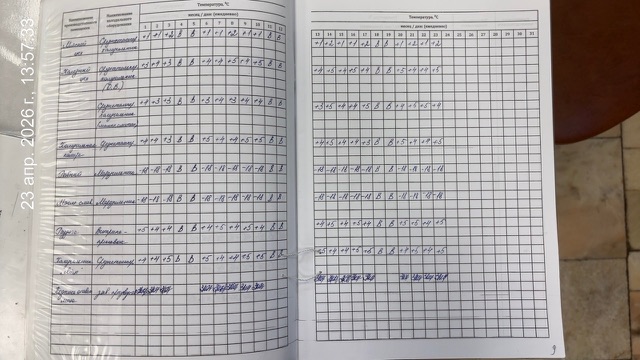 Журнал учета температурного режима холодильного оборудования